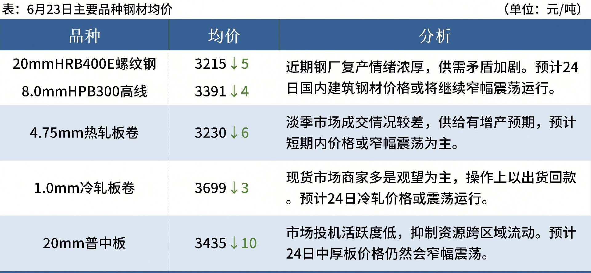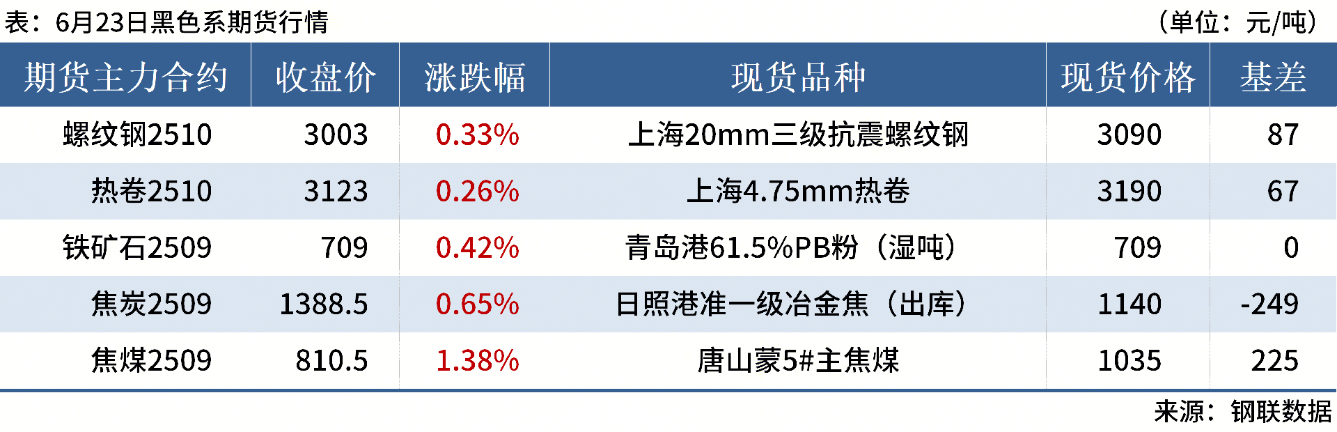 ◎ 6月23日,全國主港鐵礦石成交118.20萬噸,環(huán)比增52.1%;237家主流貿(mào)易商建筑鋼材成交10.30萬噸,環(huán)比增5.6%。
