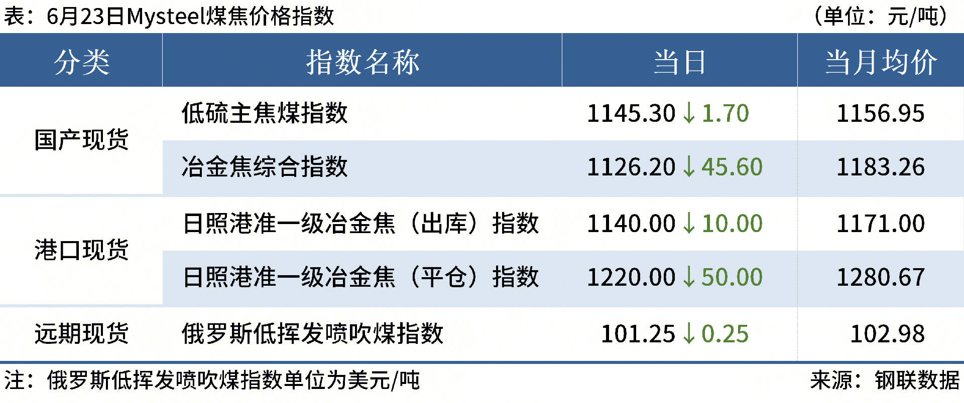 ◎ 6月23日,焦炭市場(chǎng)價(jià)格偏弱運(yùn)行,第四輪降價(jià)落地。河北山東主流鋼廠針對(duì)焦炭采購價(jià)格下調(diào)濕熄50元/噸,干熄55元/噸。