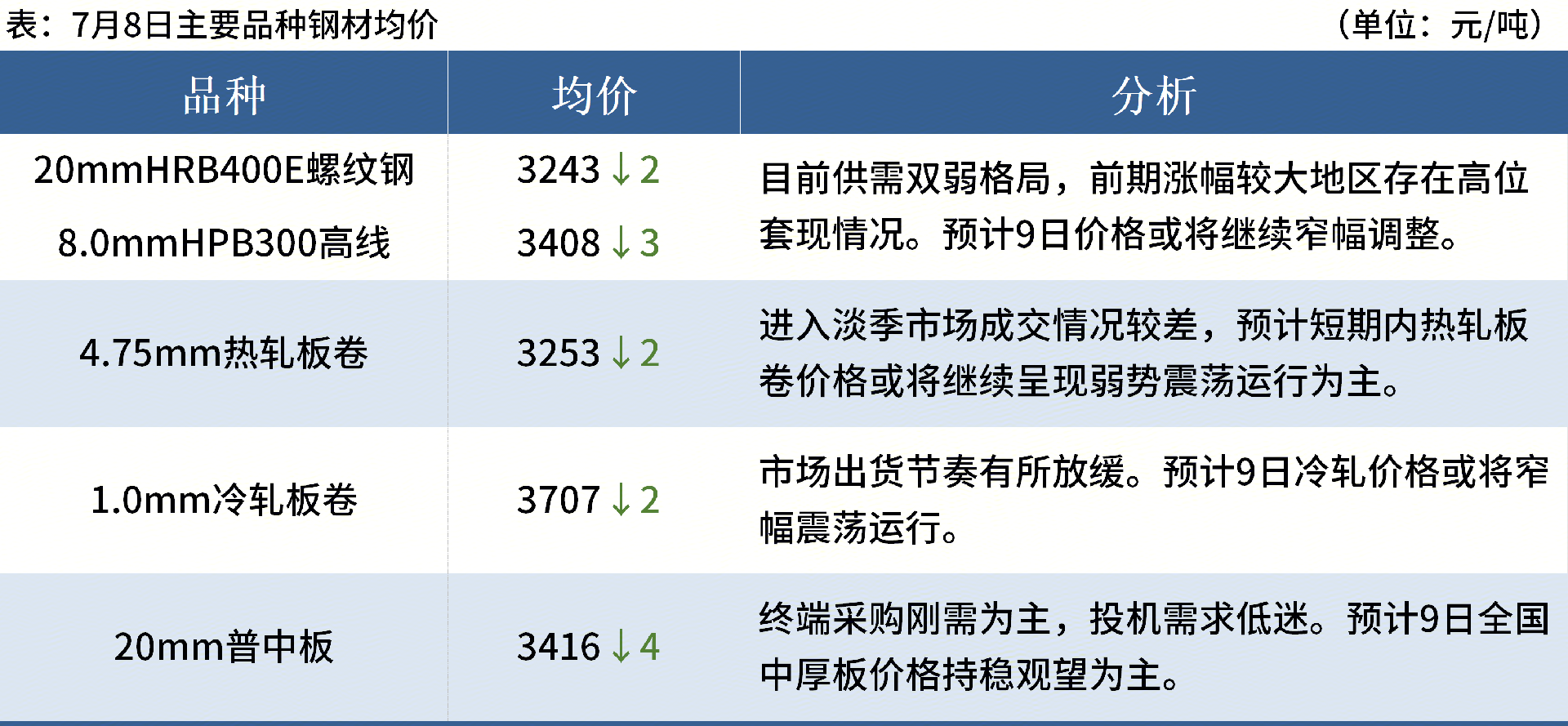◎ 7月8日,全國(guó)主港鐵礦石成交99.90萬噸,環(huán)比增16.4%;237家主流貿(mào)易商建筑鋼材成交9.57萬噸,環(huán)比減0.2%。