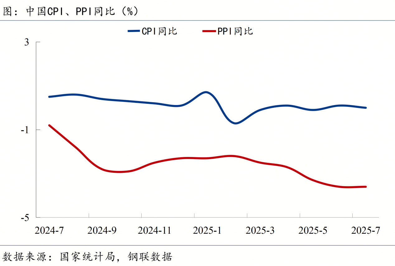 ◎ 國(guó)家統(tǒng)計(jì)局:7月份,擴(kuò)內(nèi)需政策效應(yīng)持續(xù)顯現(xiàn),CPI環(huán)比由上月下降0.1%轉(zhuǎn)為上漲0.4%,同比持平;受季節(jié)性因素疊加國(guó)際貿(mào)易環(huán)境不確定性影響,PPI環(huán)比下降0.2%,環(huán)比降幅比上月收窄0.2個(gè)百分點(diǎn),同比下降3.6%。