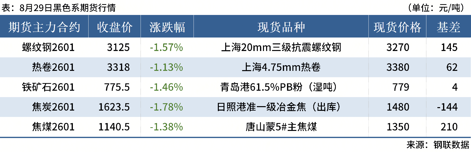 ◎ 8月29日,全國主港鐵礦石成交60.90萬噸,環(huán)比減32.9%;237家主流貿(mào)易商建筑鋼材成交8.38萬噸,環(huán)比減18.4%。