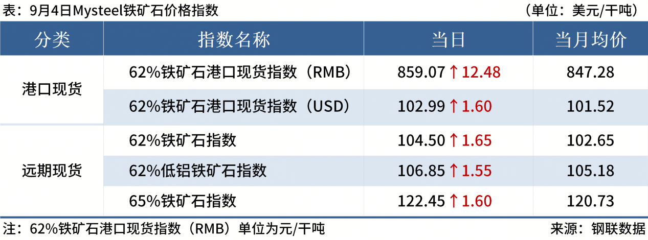 ◎ 9月4日,全國(guó)主港鐵礦石成交90.50萬(wàn)噸,環(huán)比增4.7%;237家主流貿(mào)易商建筑鋼材成交10.10萬(wàn)噸,環(huán)比增22.9%。