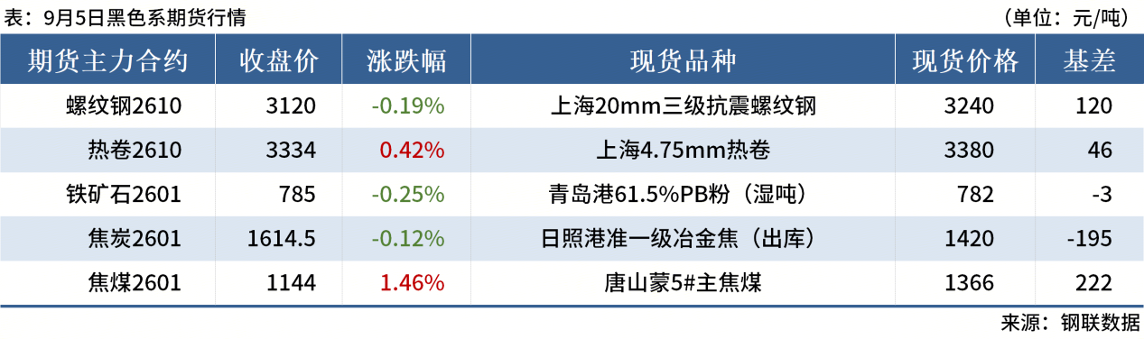 ◎9月5日,全國主港鐵礦石成交146.70萬噸,環(huán)比增62.1%;237家主流貿(mào)易商建筑鋼材成交11.33萬噸,環(huán)比增12.2%。