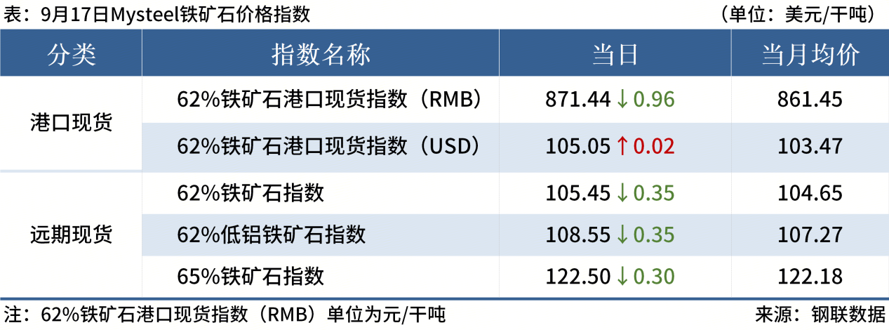 ◎ 9月17日,全國主港鐵礦石成交126.50萬噸,環(huán)比減9.3%;237家主流貿(mào)易商建筑鋼材成交10.27萬噸,環(huán)比減7.1%。
