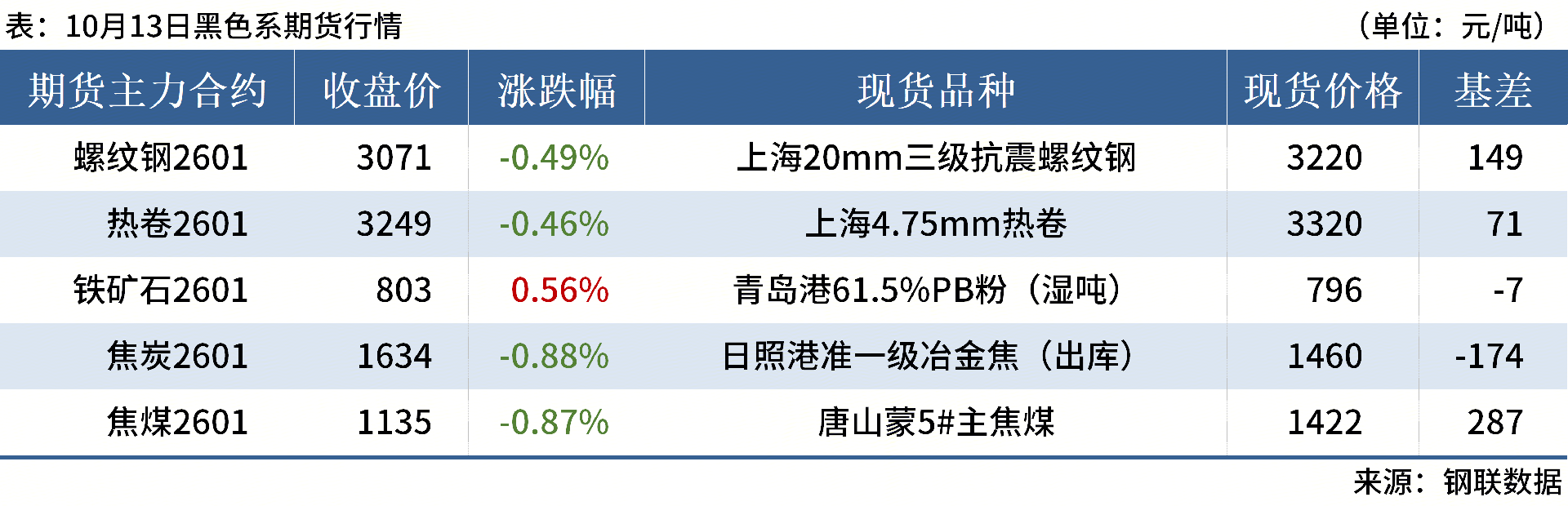◎ 10月13日,全國(guó)主港鐵礦石成交95.20萬(wàn)噸,環(huán)比增88.1%;237家主流貿(mào)易商建筑鋼材成交10.60萬(wàn)噸,環(huán)比增16%。