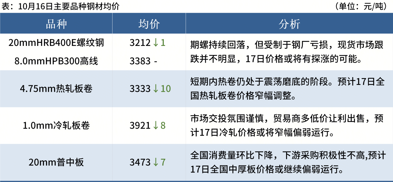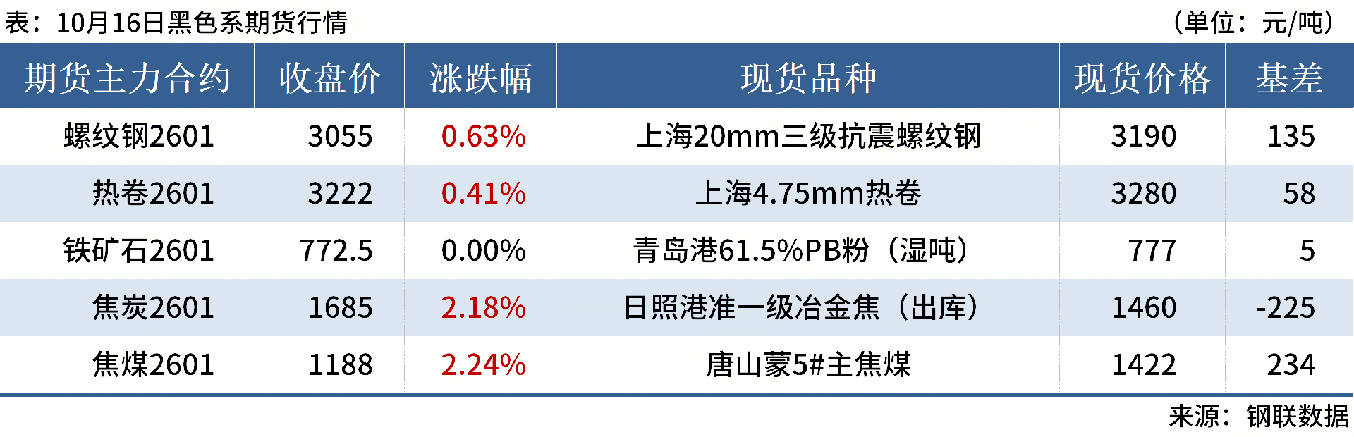 ◎ 10月16日,全國(guó)主港鐵礦石成交120.70萬(wàn)噸,環(huán)比減3%;237家主流貿(mào)易商建筑鋼材成交10.18萬(wàn)噸,環(huán)比增11.4%。