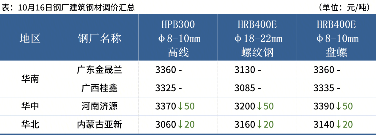 ◎ 10月16日,廣東中南鋼鐵股份有限公司、陽(yáng)春新鋼鐵有限責(zé)任公司、珠海粵裕豐鋼鐵有限公司發(fā)布關(guān)于限價(jià)銷(xiāo)售的通知。詳情>>