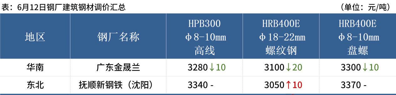 ◎ 6月12日,國內(nèi)鋼材市場震蕩偏弱運(yùn)行,唐山遷安普方坯出廠含稅下跌30報2890元/噸。