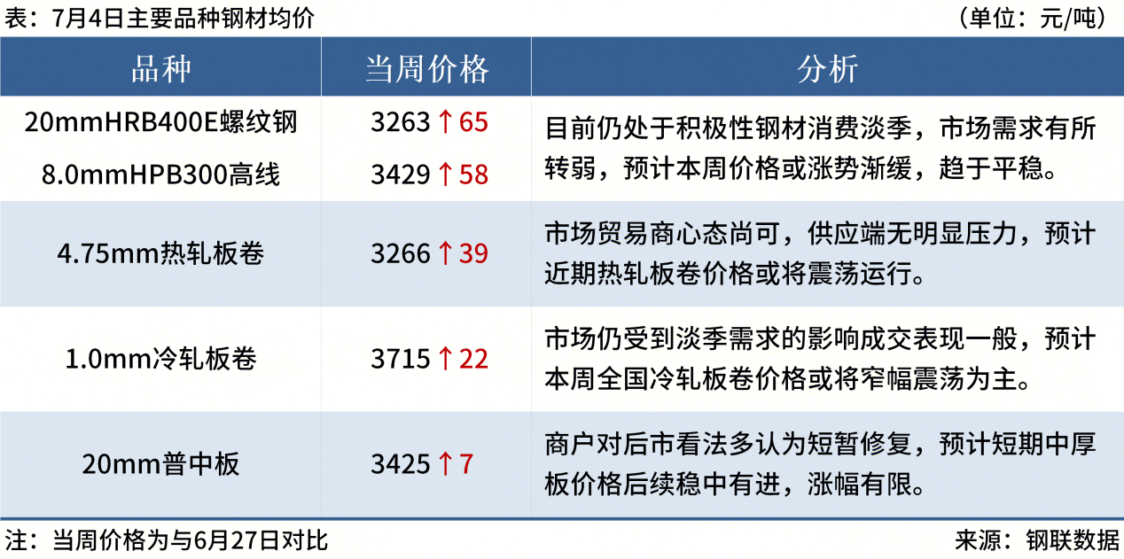 ◎ 7月4日,全國主港鐵礦石成交93.40萬噸,環(huán)比減0.8%;237家主流貿易商建筑鋼材成交9.61萬噸,環(huán)比減10.7%。