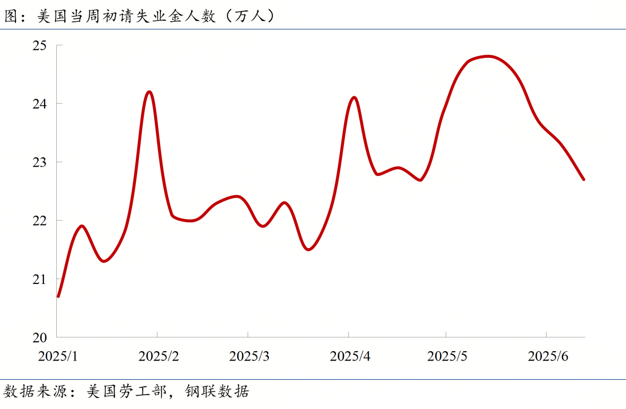 ◎ 美國(guó)勞工部公布的數(shù)據(jù)顯示,截至7月5日當(dāng)周,初請(qǐng)失業(yè)金人數(shù) 22.7萬(wàn)人,預(yù)期23.5萬(wàn)人。美國(guó)申請(qǐng)失業(yè)金的人數(shù)在連續(xù)第四周下降后,已降至兩個(gè)月來(lái)的最低水平。
