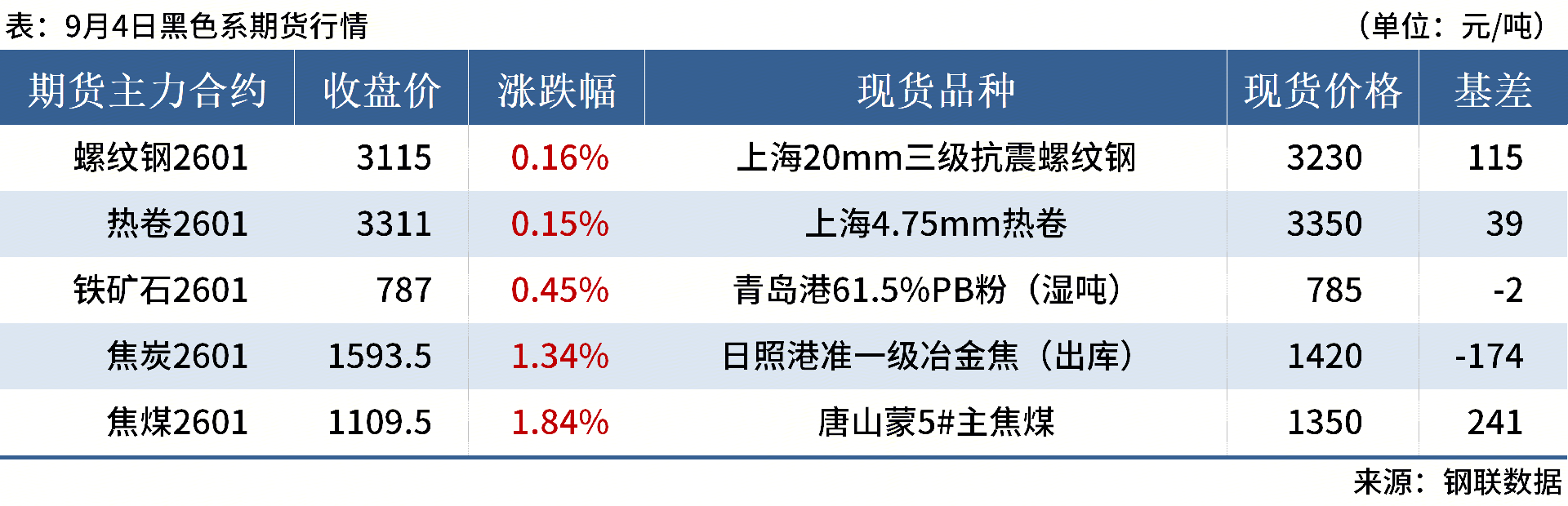 ◎ 唐山多數(shù)鋼廠集中在8月31日至9月3日期間進(jìn)行高爐檢修,限產(chǎn)幅度在30%-40%之間。多數(shù)鋼廠已于9月4日復(fù)產(chǎn),個(gè)別鋼廠延后復(fù)產(chǎn)。詳情>>